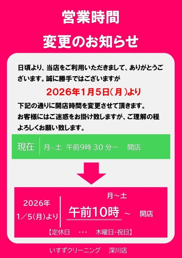日頃より いすずクリーニング 深川店 をご利用いただき、誠に