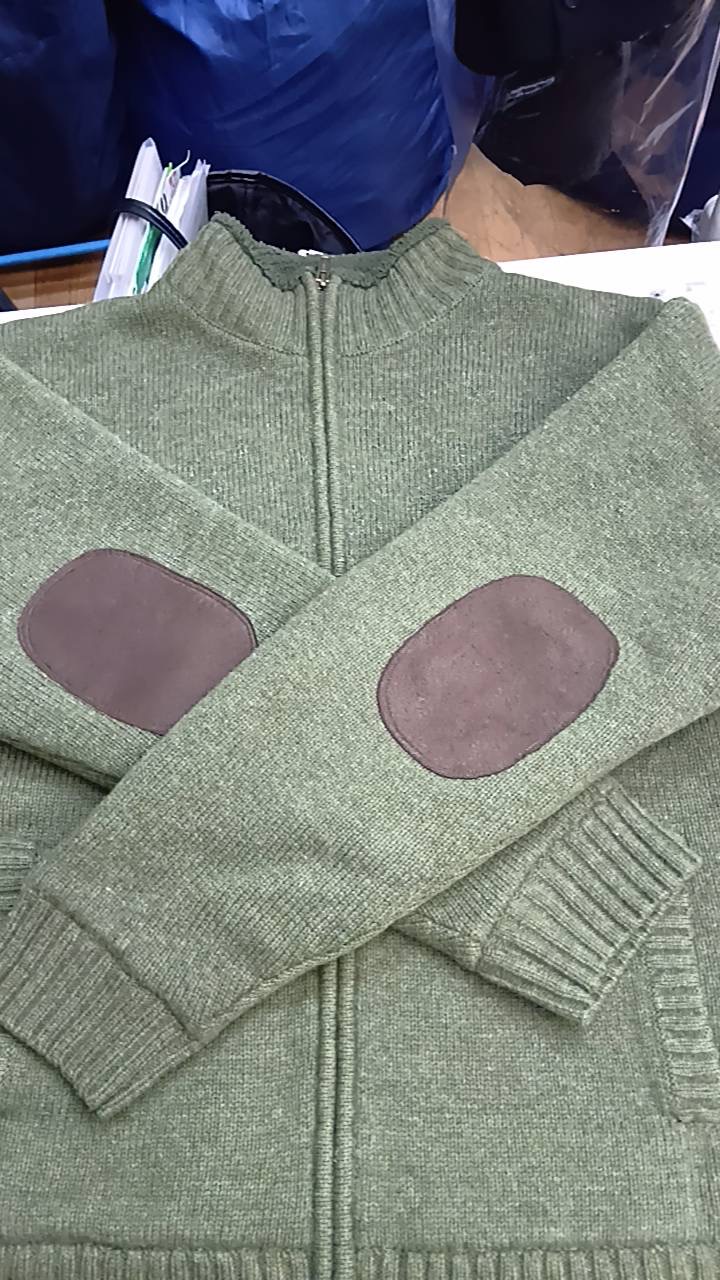 穴の部分はしっかり補修して、その上から肘あてを付けました。
